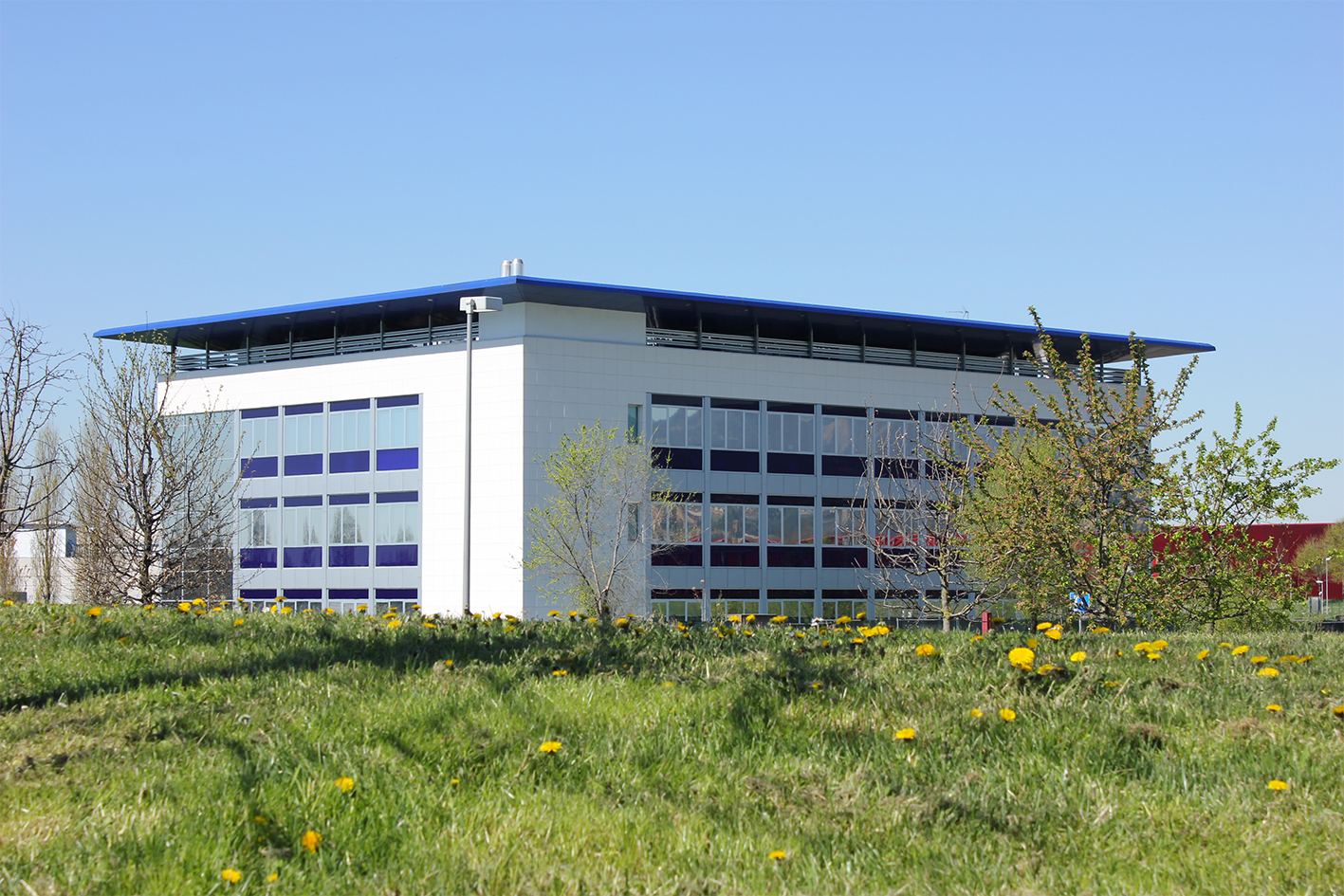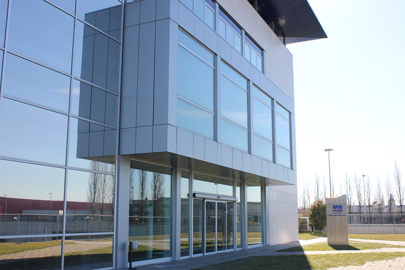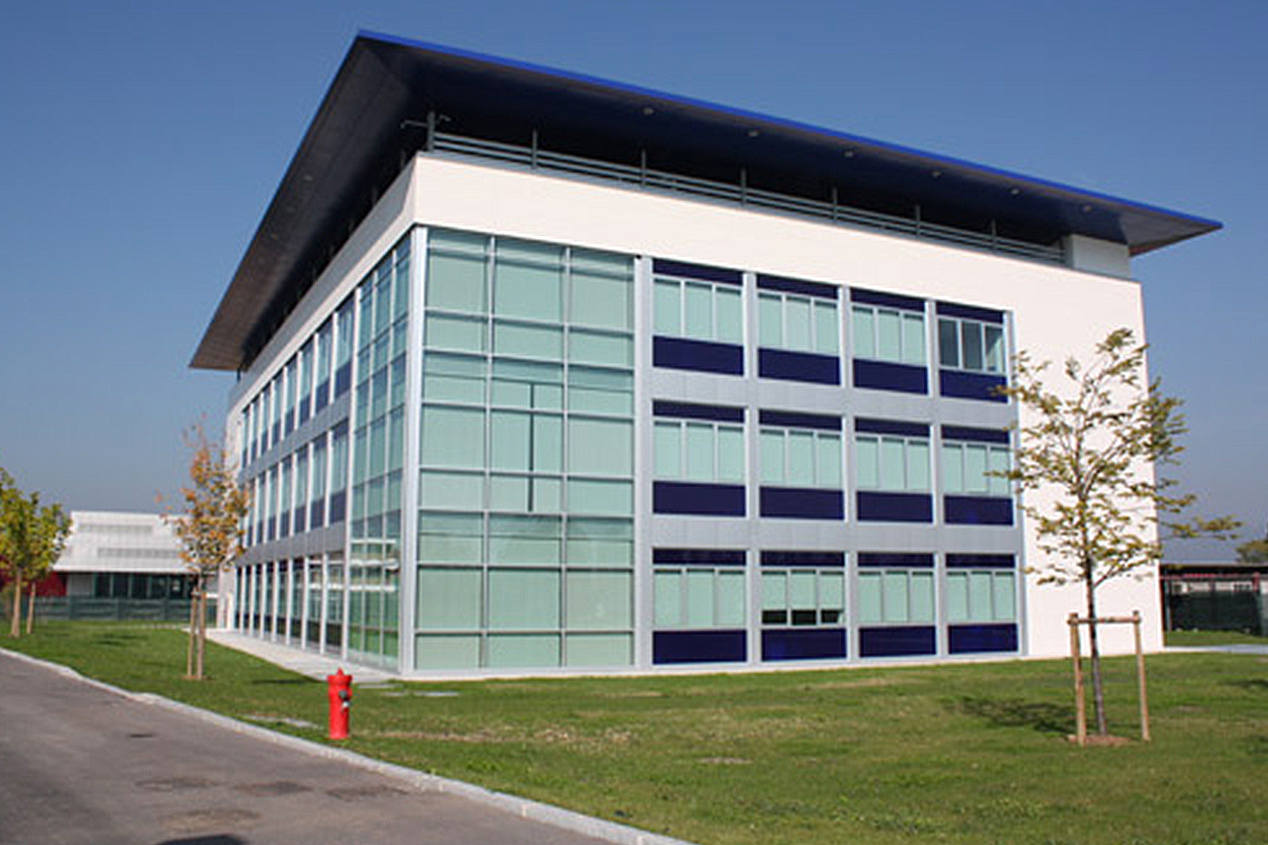 L’edificio ha un volume compatto ed una pianta rettangolare, organizzata secondo una maglia strutturale di 7 x 9.30 metri. Nei tre piani fuori terra, ciascuno con una superficie di circa 1.176 mq, sono previste sale per riunioni e videoconferenze, uffici, laboratori biochimici. Al piano interrato sono collocati i laboratori della ricerca, affiancati da stabulari, da locali tecnologici e spazi di deposito e una sala conferenze. La struttura portante è in cemento armato ed in ferro, mentre i solai sono in lastre prefabbricate tipo . Gli spazi dei laboratori e degli uffici sono ripartiti da pareti mobili ed attrezzate ed hanno tutti l’affaccio verso l’esterno. I prospetti hanno un disegno geometrico che rispecchia il modulo della struttura: nel rispetto delle linee guida tracciate da Nouvel, l’architettura è caratterizzata da facciate continue in vetro strutturale, collocate in due angoli dell’edificio, e da ampie aperture schermate da frangisole. Le superfici piene sono rivestite da lastre prefabbricate ottenute dall’impasto di inerti pregiati e di cemento bianco ad alta resistenza. Sul coronamento dell’edificio una sequenza di pilastri d’acciaio porta un piano orizzontale in pannelli metallici il cui il forte aggetto, sviluppato lungo tutto il perimetro, protegge le facciate sottostanti.