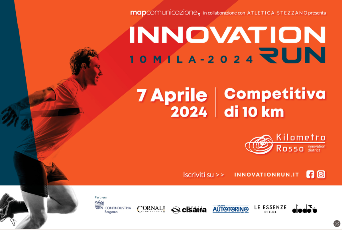 Innovation Run è un evento realizzato da Map Comunicazione in collaborazione con Atletica Stezzano. I soggetti capofila del progetto sono: Confindustria Bergamo, Cisalfa Sport, Cornali Gioiellerie, Gruppo Autotorino, Le Essenze di Elda, Xmeta Real. Sponsor tecnici Diadora e Pubbliarea. Location ospitante Kilometro Rosso Innovation District.