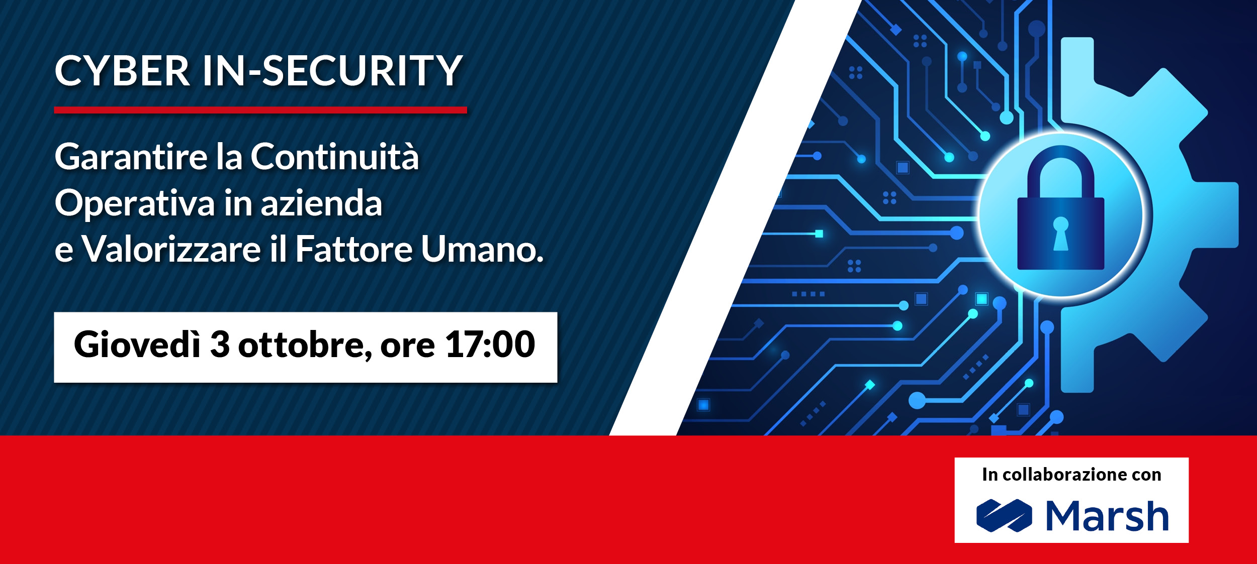L’evento “Cyber In-security – Garantire la Continuità Operativa in azienda e Valorizzare il Fattore Umano” si terrà giovedì 3 ottobre alle 17:00 e prevede, tra gli altri, gli interventi di: