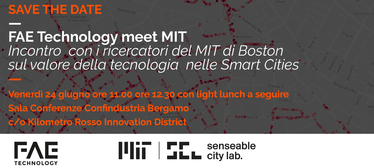 Il “FAE Technology meet MIT Senseable City Lab” è un evento promosso da FAE Technology, e si terrà al Kilometro Rosso il 24 giugno alle 11.00 presso l’auditorium di Confindustria Bergamo.