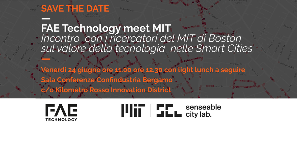 Il “FAE Technology meet MIT Senseable City Lab” è un evento promosso da FAE Technology, e si terrà al Kilometro Rosso il 24 giugno alle 11.00 presso l’auditorium di Confindustria Bergamo.