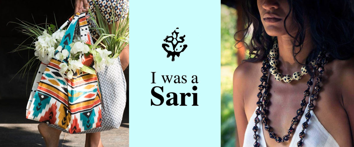 Le donne di “I was a Sari” realizzano a mano collane, braccialetti, borse, foulard e accessori moda, utilizzando stoffe di Sari riciclati (il Sari è un tradizionale indumento femminile indiano).