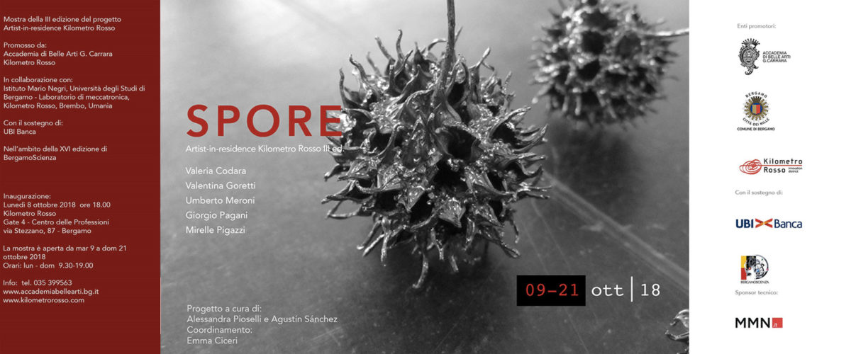 Da Martedi 9 a Domenica 21 ottobre si terrà “SPORE”, mostra del progetto “Artist-in-Residence Kilometro Rosso”, giunto alla sua III edizione (orario di apertura: da lun a dom, dalle 9.30 alle 19.00).