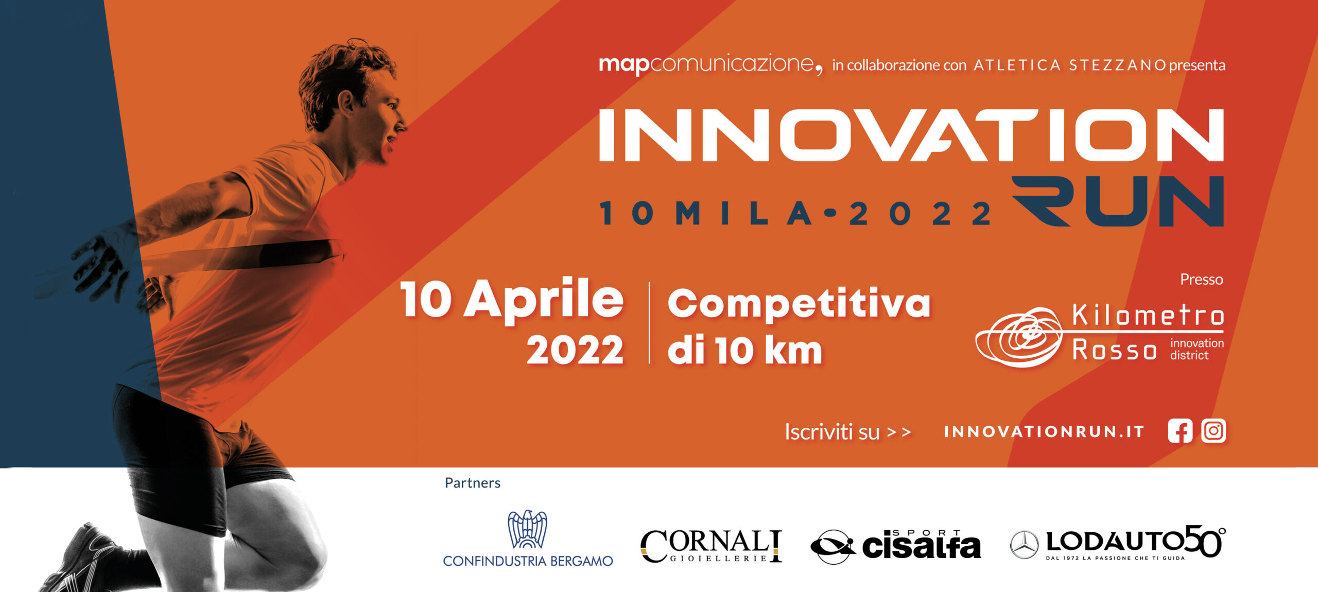 “Innovation Run” è un progetto promosso da Confindustria Bergamo, Cisalfa Sport, Cornali Gioiellerie e Lodauto che, insieme a Kilometro Rosso, sono accomunate da una forte spinta innovativa e attenzione al territorio, nonché dalla volontà di condividere con la società civile iniziative nell’ambito della ricerca, della cultura e dello sport.