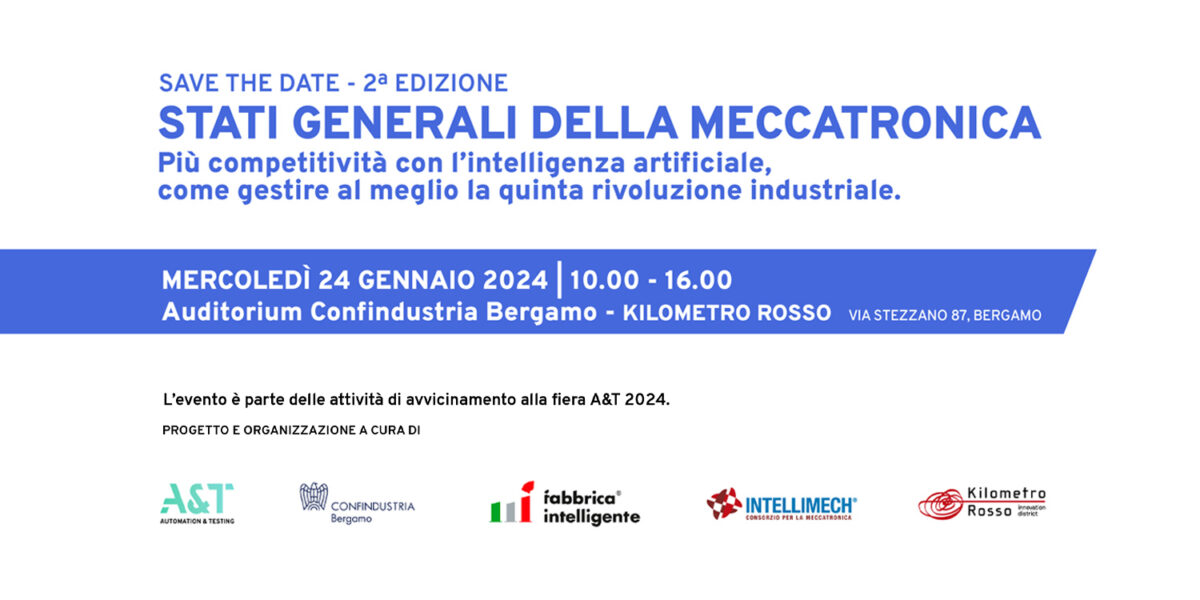 Dopo il successo della scorsa edizione, tornano gli Stati Generali della Meccatronica, un momento di aggiornamento e confronto tra oltre 250 partecipanti, promosso da Confindustria Bergamo, Kilometro Rosso, A&T – Automation & Testing, Consorzio Intellimech e Cluster Nazionale Fabbrica Intelligente. L’edizione di quest’anno in particolare sarà dedicata a un tema di strettissima attualità: l’intelligenza artificiale, e i modi in cui questa può essere utilizzata dalle aziende del settore per guadagnare in competitività.