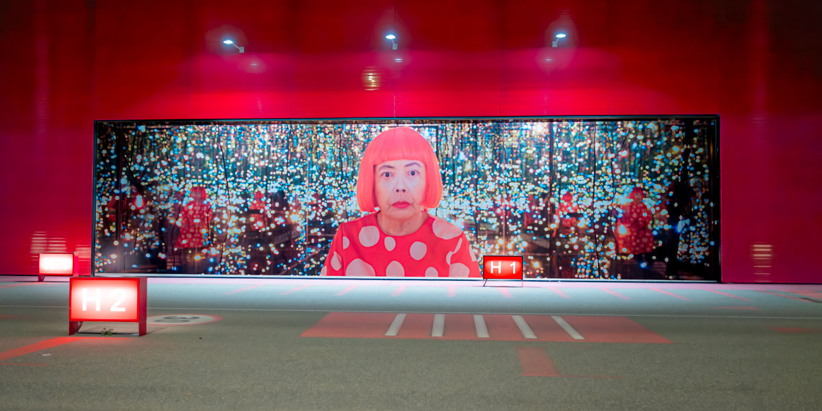 In occasione della mostra “Yayoi Kusama. Infinito Presente”, in programma al Palazzo della Ragione fino al 24 marzo 2024 e dedicata alla grande artista visiva giapponese, Kilometro Rosso ha deciso di “ospitare” alcune opere di Kusama proiettandole direttamente sull’iconico muro rosso, offrendo così agli automobilisti che transitano sulla A4 un assaggio della mostra. Un progetto fortemente voluto da Luca Bombassei – ideatore dei portali come piattaforma per la promozione e la diffusione della cultura – e frutto della collaborazione con The Blank, network dedicato all’arte e alla cultura contemporanee a cui si deve l’organizzazione della mostra.
