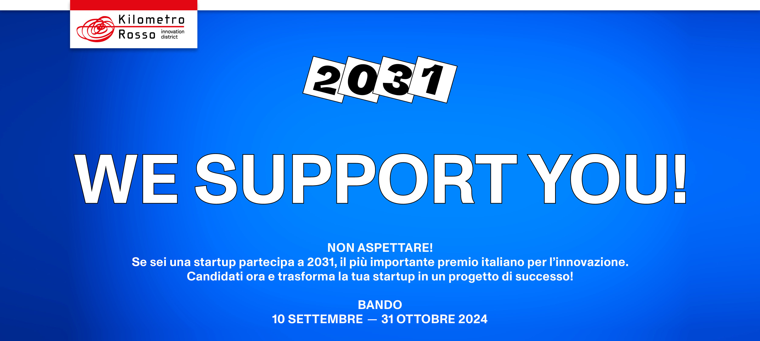 Individuare e sostenere idee innovative capaci di generare un impatto positivo sulla società, l’ambiente e l’economia, trasformando il futuro del Paese. È questo, fin dalla sua nascita, l’obiettivo di Premio 2031, il più importante riconoscimento italiano dedicato all’innovazione, che negli anni ha supportato oltre settemila startup, consegnato centinaia di premi e avviato percorsi con numerosissimi partner nazionali e internazionali. E che torna per la sua XIV edizione con un payoff che rispecchia perfettamente la sua missione: “We support you!”, ti supportiamo.
