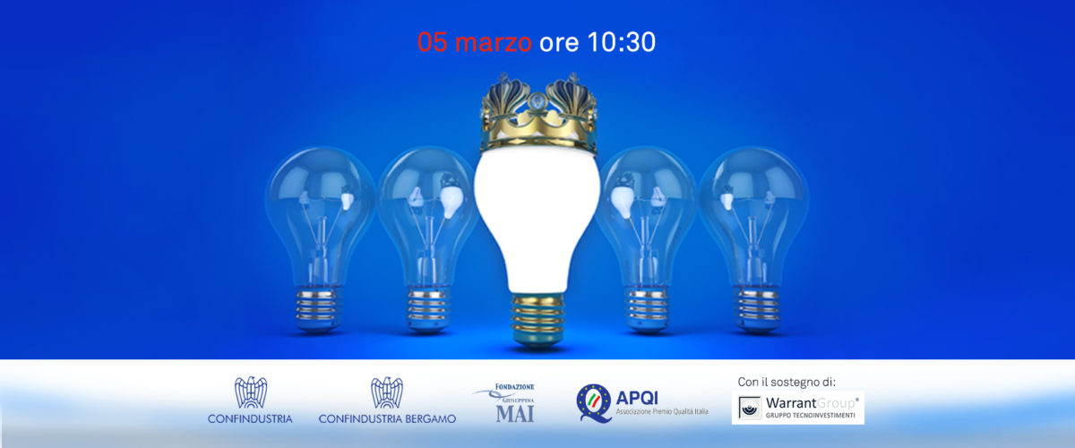 L’evento si terrà nel Parco Scientifico Tecnologico Kilometro Rosso, il 5 marzo, in collaborazione con Confindustria, Confindustria Bergamo, Fondazione Giuseppina Mai, l’Associazione Premio Qualità Italia (APQI) e con il sostegno di Warrant Group (Gruppo Tecnoinvestimenti).