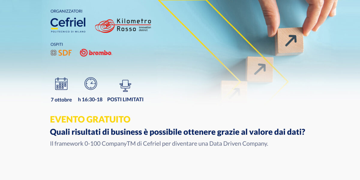 Giovedì 7 ottobre Kilometro Rosso, in collaborazione con Cefriel, organizza l’evento “Quali risultati di business grazie al valore dai dati?“, in programma dalle ore 16:30 alle 18:00.