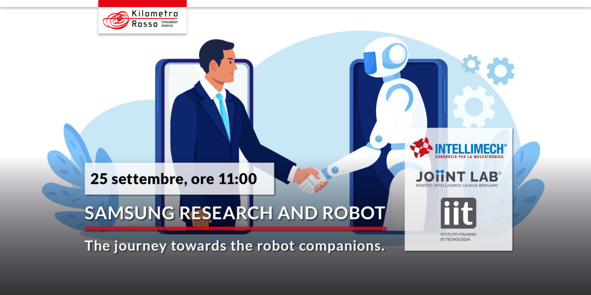 In questo contesto, mercoledì 25 settembre alle ore 11:00, Kilometro Rosso ospita Yongtae Giovanni Kim, Ingegnere di Samsung Research specializzato nell’area Home Service and Wearable Robots. Per l’occasione, Mr. Kim interverrà all’incontro “Samsung Research and Robot – The Journey towards the robot companions” organizzato da Kilometro Rosso in collaborazione con Istituto Italiano di Tecnologia, Joiint Lab e Consorzio Intellimech.