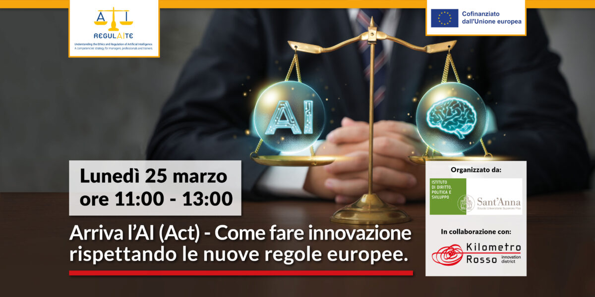 Da tempo Kilometro Rosso è impegnato su questo fronte in qualità di partner del progetto RegulAIte, co-finanziato dal programma europeo Erasmus Plus, che mira a promuovere le competenze per la formazione professionale sull’etica e i regolamenti dell’AI nell’ecosistema industriale. Di RegulAIte, e in generale delle novità normative che riguardano il settore, discuteremo lunedì 25 marzo nel corso di un seminario organizzato dalla Scuola Superiore Sant’Anna (anch’essa tra i partner del progetto), dal titolo “Arriva l’AI (Act) – Come fare innovazione rispettando le nuove regole europee”.