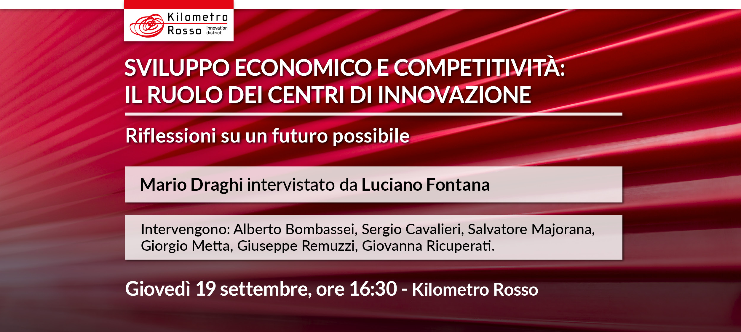 Mario Draghi sarà intervistato dal Direttore del Corriere della Sera, Luciano Fontana. L’evento prevede, inoltre, gli interventi di importanti rappresentanti del mondo industriale, accademico, e della ricerca, che porteranno il loro contributo sulle prospettive di sviluppo economico e sociale e sul ruolo dei centri di innovazione.