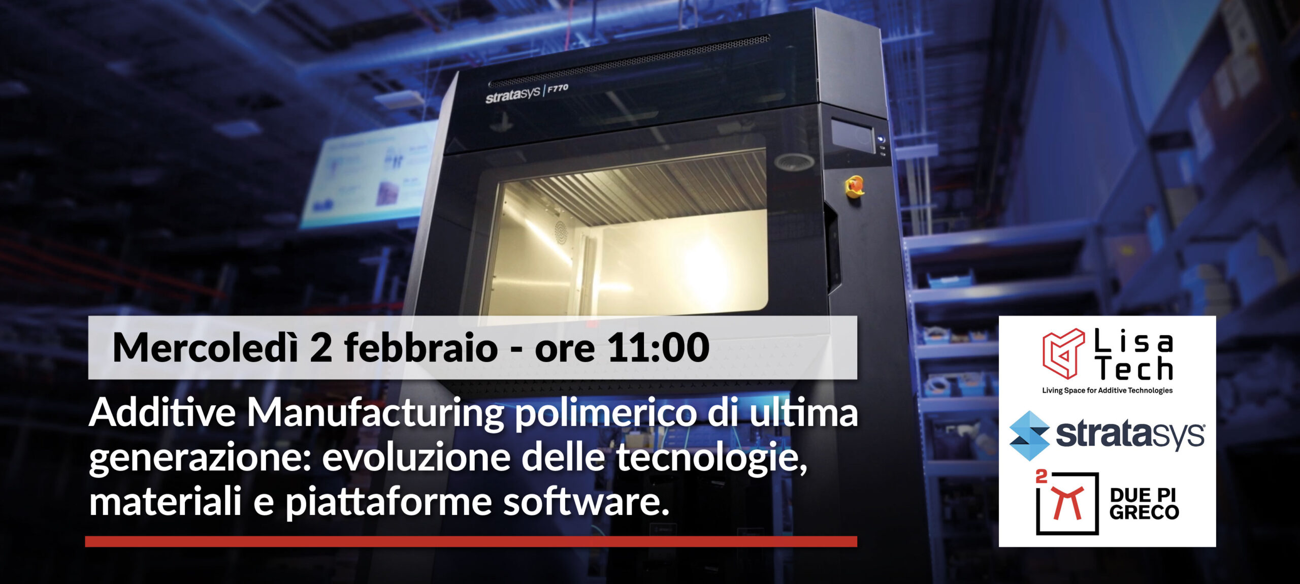 Si comincia Mercoledì 2 febbraio con il webinar “Additive Manufacturing polimerico di ultima generazione: evoluzione delle tecnologie, materiali e piattaforme software”.